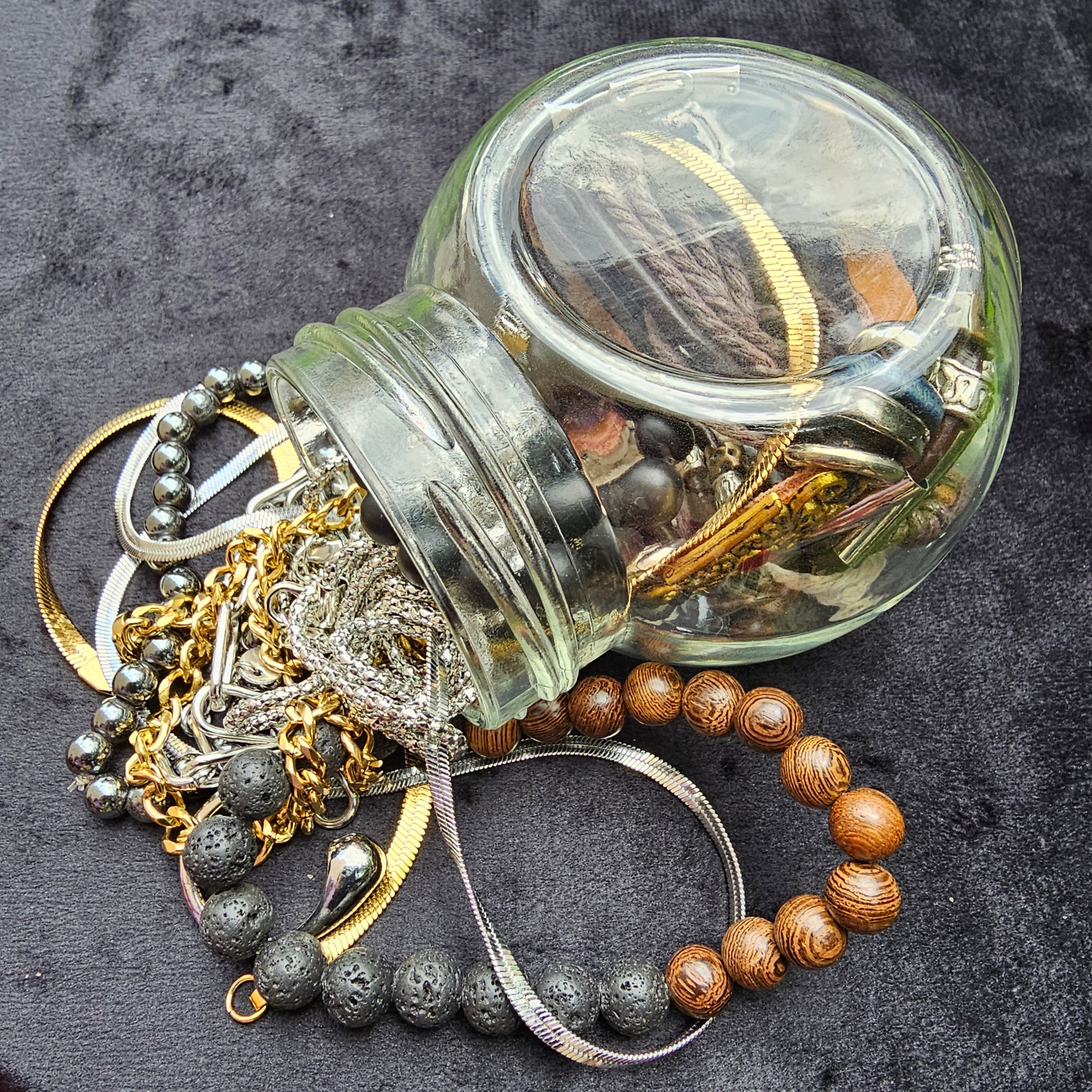 Fiecare Jewelry Mystery Jar conține un mix unic de peste 12 bijuterii: cercei, inele, brățări, coliere, lănțișoare, pandantive sau broșe. Majoritatea pieselor sunt realizate din inox de înaltă calitate, iar multe sunt placate cu aur de 18K, pentru un look elegant și durabil.